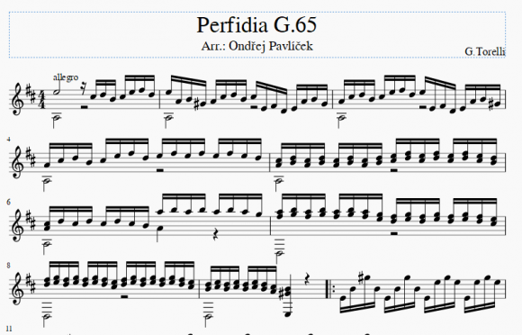 G.Torelli: Perfidia. Klasická kytara, standardní notace.