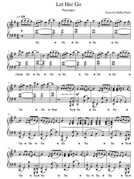 Nabízím autorskou klavírní aranži ke skladbě Let Her Go od Passenger. Audio nahrávku je možné si poslechnout zde: https://youtu.be/X5qiQEvED4I