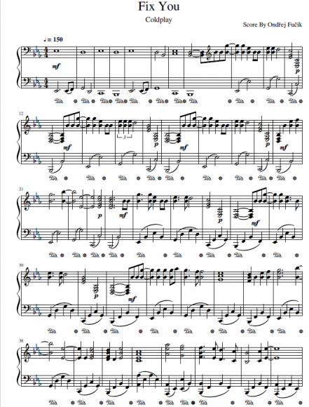Nabízím autorskou klavírní aranži ke skladbě Fix You od skupiny Coldplay. Audio nahrávku je možné si poslechnout zde: https://youtu.be/5biy-_sPBNo