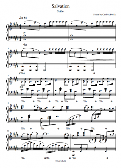 Nabízím autorskou klavírní aranži ke skladbě Salvation od skupiny Skillet. Nahrávku je možné si poslechnout zde: https://youtu.be/9U0VXkGuw5g