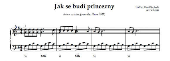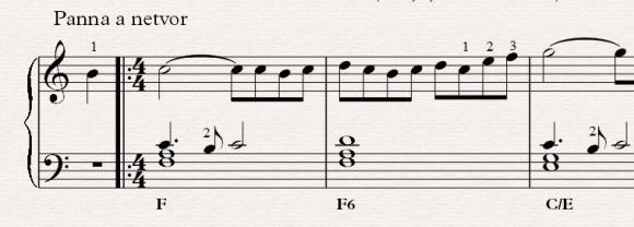 Notový zápis melodie s akordy.